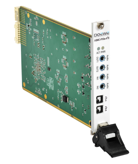 度緯科技為解決A2B 檢測(cè)設(shè)備的市場(chǎng)不足,將?AD2428?A2B?收發(fā)器與自研 32?bit?Δ?Σ?ADC/DAC 集成于一張 3U?PXIe 模塊,推出 ASMC?PXIe?A2B 采集卡。該卡既可無損旁路監(jiān)聽整條 A2B 總線,也能在任意節(jié)點(diǎn)注入或回放波形,從實(shí)驗(yàn)室研發(fā)到道路路試再到產(chǎn)線質(zhì)檢,覆蓋完整測(cè)試閉環(huán)。