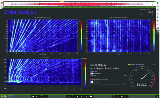 階次分析是一個將頻譜及時間歷程與旋轉(zhuǎn)部件的RPM(每分鐘轉(zhuǎn)數(shù))關(guān)聯(lián)起來的工具,用于揭示振動與噪聲機理。在旋轉(zhuǎn)和往復式機械中,載荷的變動和運動部件的缺陷會引起振動,并相應地輻射噪聲。振動的形態(tài)與機械運動及靜止部件的結(jié)構(gòu)特性有關(guān),而階次分析能夠?qū)⑦@些振動和噪聲信號與旋轉(zhuǎn)部件的轉(zhuǎn)速聯(lián)系起來,從而揭示其內(nèi)在機理。