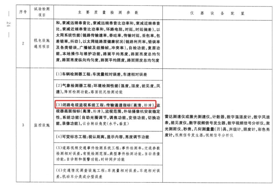 為進一步加強公路水運工程質量檢測機構資質審批工作,提升技術評審工作的針對性和有效性,交通運輸部辦公廳于8月1日正式發(fā)布交辦安監(jiān)函〔2024〕1432號文件,也即《交通運輸部辦公廳關于做好公路水運工程質量檢測機構資質評審有關工作的通知》。其核心主旨包括:一、更新優(yōu)化部分檢測參數,二、進一步細化明確專家評審內容。本文也將從以上兩個方面解讀在交通工程專項中的閉路監(jiān)控視頻傳輸系統(tǒng)和ETC門架系統(tǒng)方面新老標準有何區(qū)別,并且將給出針對新標準的解決方案。