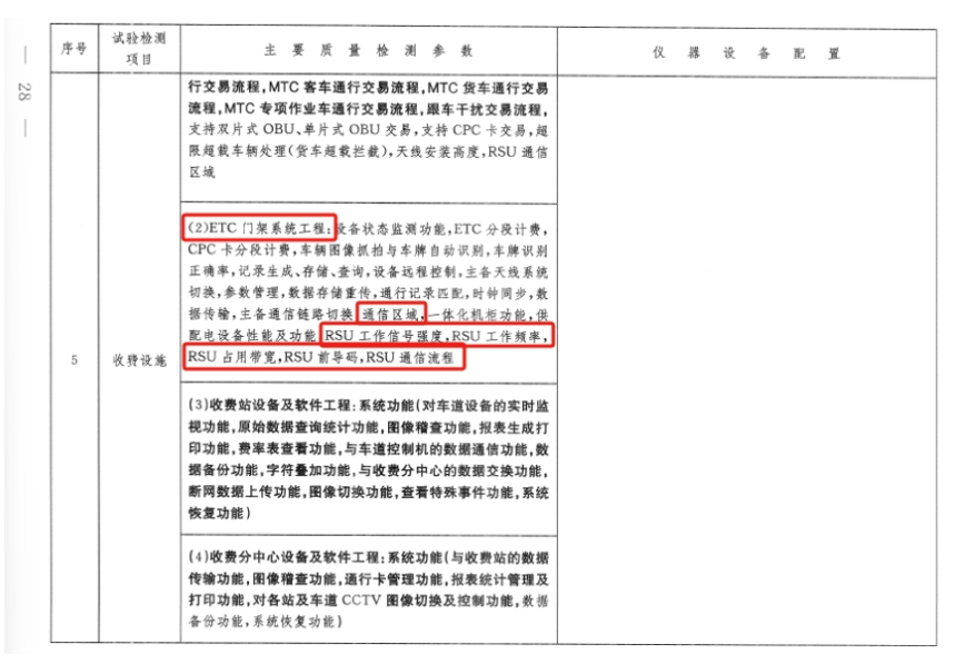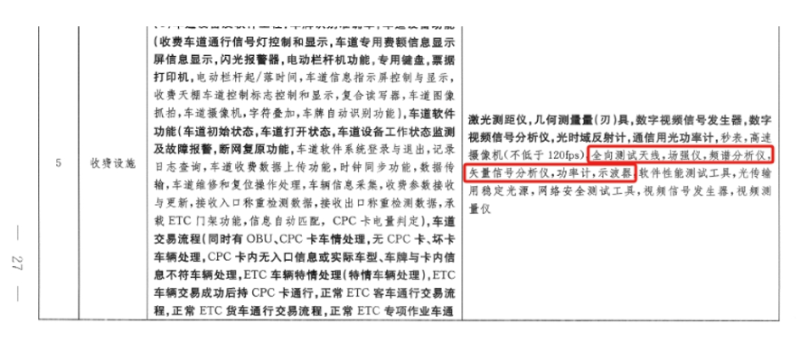 2.4 ETC門架系統(tǒng)(路測設備工程)核心檢測設備要求的差異