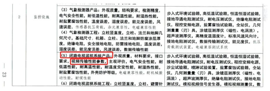 圖四 新標準中關于閉路電視視頻傳輸性能參數檢測設備要求的截圖