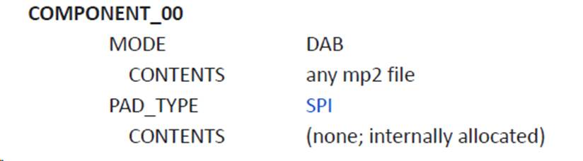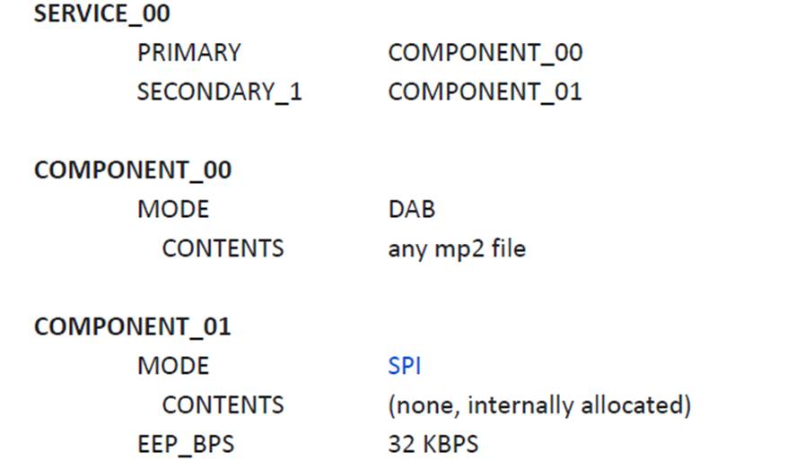 SPI分組數(shù)據(jù)通道可以配置為現(xiàn)有DAB業(yè)務(wù)的次要組件,如下所示。