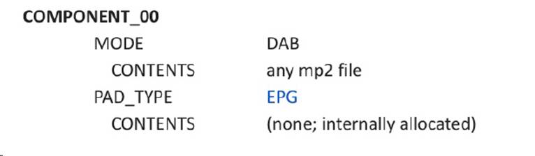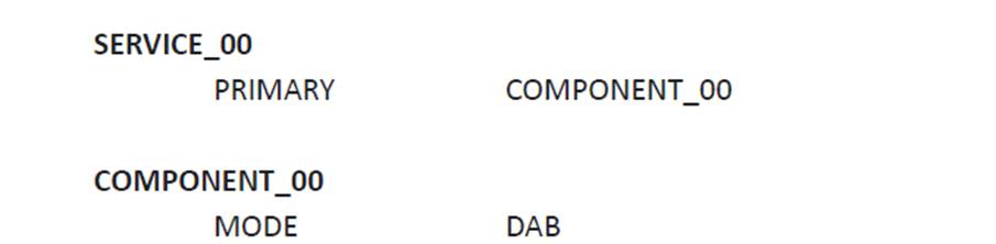 EPG分組數(shù)據(jù)通道可以配置為現(xiàn)有DAB業(yè)務(wù)的次要組件,如下所示。