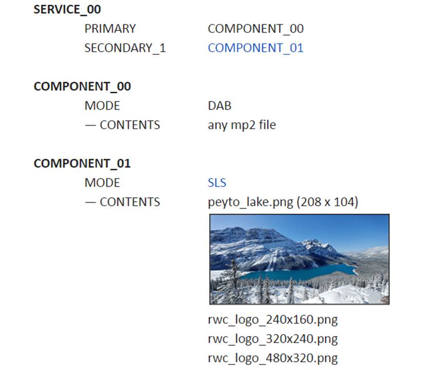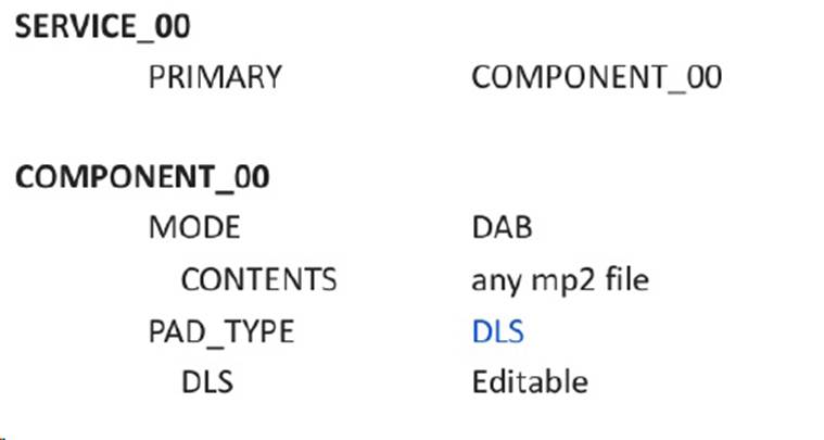 DLS/DL+分組數(shù)據(jù)通道可以配置為現(xiàn)有DAB業(yè)務(wù)的次要組件,如下所示。
