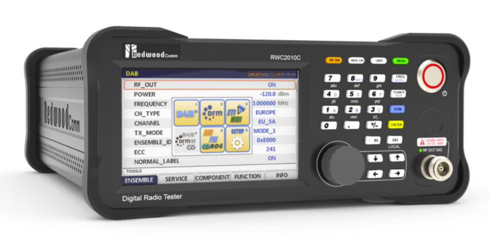 如果已經(jīng)有了符合要求的ETI測試流,那么調(diào)制出來就比較容易了。選擇一臺支持DAB標(biāo)準(zhǔn)的信號發(fā)生器即可滿足要求,例如RWC2010C,此款設(shè)備可直接播放ETI流進(jìn)行調(diào)制,輸出DAB信號,并可靈活調(diào)整頻率與功率。