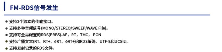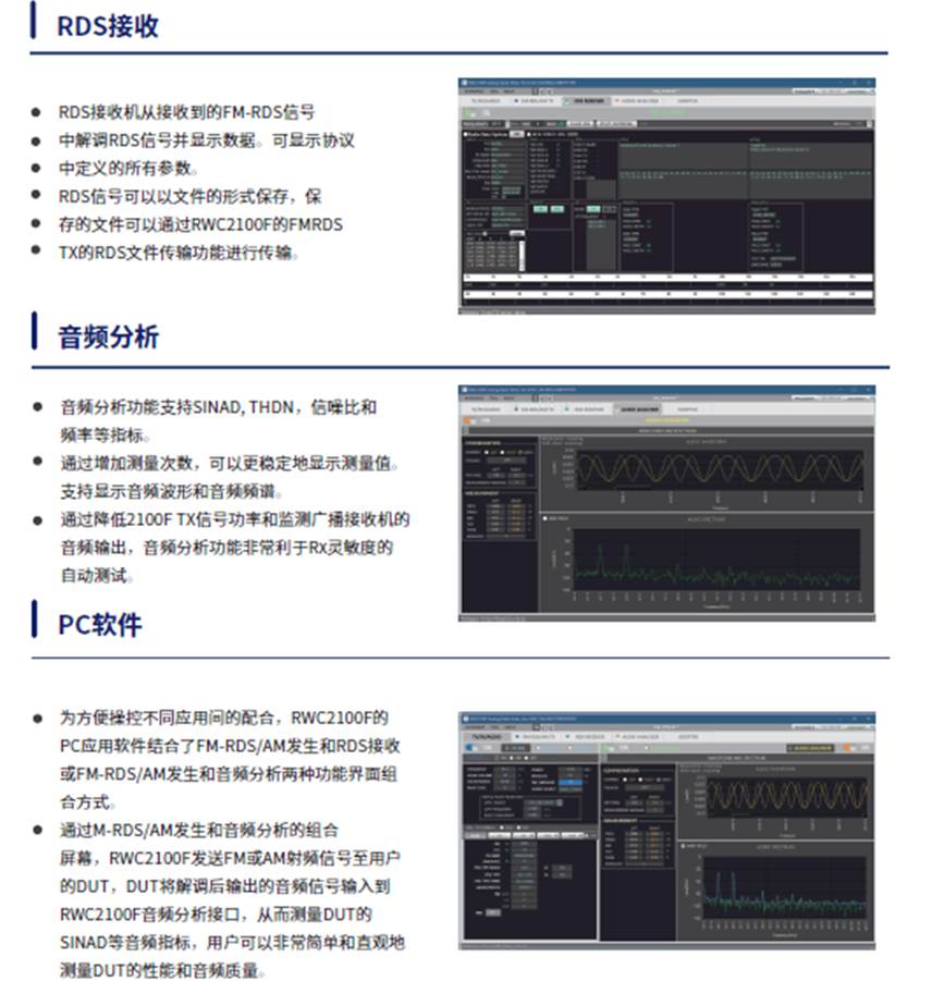 針對FM-RDS系統(tǒng)測試,我司的RWC2100F設(shè)備可完全滿足 RDS發(fā)射機(jī)和RDS接收機(jī)的相關(guān)測試,為廣大廠商和高校研究所提供了豐富的儀器便利。