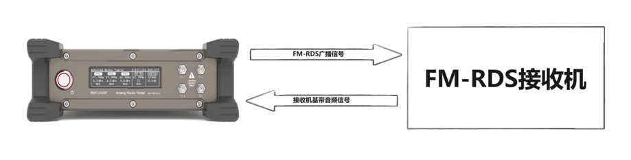 RWC2100F輸出FM-RDS廣播射頻信號,通過空場或線纜的方式連接FM-RDS接收機(jī),接收機(jī)接收信號并解調(diào)后輸出基帶音頻信號給RWC2100F進(jìn)行音頻信號分析。