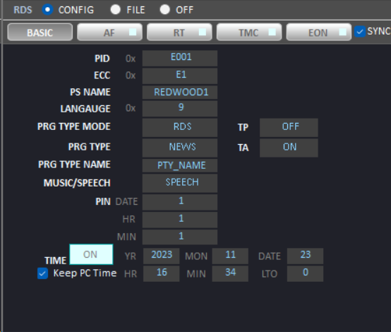 測試對象為FM-RDS的發(fā)射機(jī),使用我司的RWC2100F可進(jìn)行實(shí)時的FM-RDS內(nèi)容監(jiān)測,包括TA TP EON AF信息,以及RDS內(nèi)容中的拓展文本及時間內(nèi)容,實(shí)現(xiàn)全方位的發(fā)射機(jī)內(nèi)容測試。