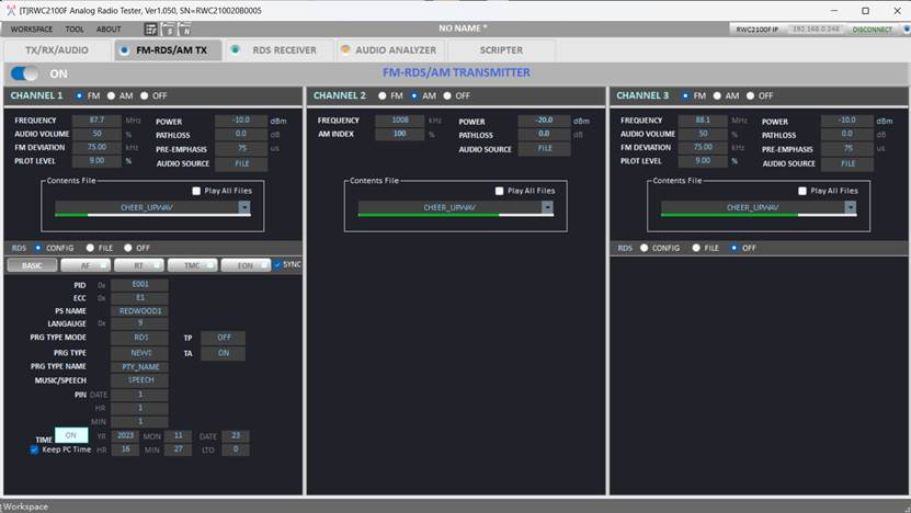 RWC2100F FM-RDS信號發(fā)生設(shè)置界面展示: